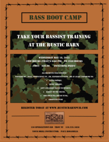 1800 hours (thAts 6:00 pm) to 1930 hours cost: $20.00 including pizza All recruits will Achieve mastery, proficiency, experience with...or st least exposure to: wave theory, music theory, left and right hand technique, Basics of the Blues, the four pillars of funk, groovitecture