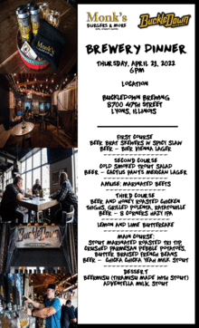 Join us Thursday April 21st for our next Brewery Dinner. once again we will be going on location to Buckledown Brewing. Enjoy a tasting menu of 6 courses each paired with a Buckledown brew in in intimate brewery setting . Our Culinary Team has put together another fantastic menu to pair with some of Buckledown's awesome brews. The last dinner sold out so get your tickets now.