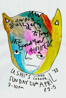 round 004 of our monthly gig thingy (last Sunday of Every Month) and this one is particularly fun as we have quite the international affair as well as new bands from members of BAMYA and DR. VZX MOIST TO TERAS (GREECE) ~ wonky post punk from sort of far away!!! ffo: los cripis, old maybe COWBOY BUILDERS (ED/GLA) ~ experimental art punk sort of from the other city ffo: bamya, dr vzx moist https://px4m.bandcamp.com/.../px4m0007-the-name-of-the... ALVIDREZ (USA) ~ the haunting solo project of an American in Glasgow ffo: grouper, yohuna https://alvidrez.bandcamp.com/album/i-am-not-an-engineer IKE GOLDMAN (MCR/CDF) ~ wistful bedroom pop from outta space ffo: alex g, r. l. kelly https://ikegoldman.bandcamp.com/album/ike-goldman-is-real-in £3/4 unwaged £5 otherwise 7-10PM 24/04/22 DO AN LFT B.Y.O.B. (pay corkage)