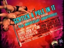 A Night of Stand Up Comedy and Pole Dancing Schtick a Pole In It....1 Year Anniversary Show R Bar-218 Bowery (Between Prince and Spring) Saturday, January 25th 8pm (doors open at 7:30) $15 online (fees included) $20 cash at the door Plus Free Giveaways of Hacienda Vieja Tequila.