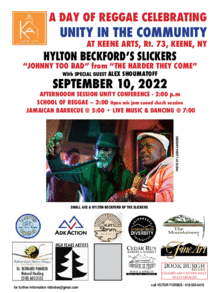A day of Reggae celebrating Unity in the Community featuring Hylton Beckford's Slickers ( of Johnny Too Bad fame) as well as Small Axe and other featured musicians sharing their stories and techniques.