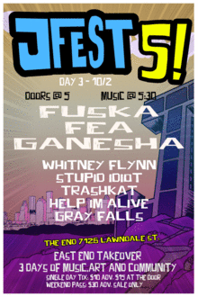 This event is a 3 day DIY music and art festival featuring bands and artists from Houston, Austin, Dallas, and San Antonio!