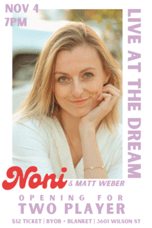 We have a great opening act - Noni - starting things off at 7:30pm.