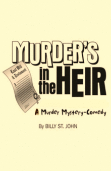 Synopsis: Turn the game Clue into a play and you have the masterfully entertaining Murders in the Heir! Almost every character in this hilarious mystery has the weapon, opportunity, and motive to commit the unseen murder. And its up to your audience to decide who actually did it! Each of the heirs to the tyrannical billionaire Simon Starkweather has the means and the motive to do away with him. Starkweather gathers his family and employees to announce the contents of his will. His lawyer, Lois van Zandt, reveals that he has bequeathed vast fortunes to his befuddled niece Fiona, her playboy son Jordan, his great-niece Paula (a Southern belle) and his grandson Simon III, as well as to his many servants. Then Lois delivers the bombshell! Within hours this will becomes invalid. Of course, the rejected heirs are not pleased, so its not surprising when they roam the old mansion carrying such items as an ax, a gun, and poison. Predictably, the lights go out, and Simon is discovered murdered. Simon III (played by the same actor who plays the elderly Simon) is determined to find his grandfathers killer, with the help of detective Mike Davis. The plays unique ending, utilizing secret ballots gathered at intermission from the audience, determines the killer in this Billy St. John maze of murder.