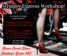 In a hurry to learn artful techniques for removing and revealing? All aboard! Whether you are getting ready to perform on stage, or preparing for a sexy night with your lover, this workshop will help you to take it off while turning them on! If you are thinking about signing up for a full length course, such as the 5 week Sexylesque workshop, this is also a great time to just dip a little toe in glitter water to see if you like burlesque. We will cover gloves, corsets, shoes, stockings, garters and bras!!!