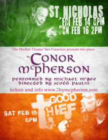 St. Nicholas and The Good Thief, two early one person plays written by the now much celebrated Irish playwright Conor McPherson, will be performed by former San Francisco based actor Michael McGee and directed by another former Bay Area based stage, film and TV actor/director Scott Paulin,(Berkeley Rep / Magic Theatre and the film The Right Stuff ).