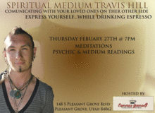 Express yourself while...drinking espresso. Have you ever wanted to talk to your loved ones on the other side? Have you ever wanted to know if there is truly a heaven? Come Join Spiritual Medium Travis Hill in an event that will blow your mind, as he talks to your loved ones who are passed away. This is an event of a life time that you don't want to miss!