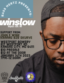 ++~~~~~~~~~~~~~~~~~~~~~~~~~~~~~~~~~~~~~~~~~~~~~~~++ Bass Hertz Presents: ++~~~~~~~~~~~~~~~~~~~~~~~~~~~~~~~~~~~~~~~~~~~~~~~++ ++~~~~~~~~~~~~~~~~~~~~~~~~~~~~~~~~~~~~~~~~~~~~~~~++ WINSLOW Hospital / BSA / Kansas City, MO ++~~~~~~~~~~~~~~~~~~~~~~~~~~~~~~~~~~~~~~~~~~~~~~~++ Hospital Records latest addition to the family hails from across the pond, flying the flag for the US drum & bass family. Producer, DJ, multi-instrumentalist, composer, music teacher and tea enthusiast Winslow, based out of St. Louis, Missouri, has quickly affirmed himself as 2021s one to watch. With previous releases on staple imprints including Spearhead, Soulvent, Goldfat, Pilot and Hospital Records, Winslows meticulous attention to detail, strong penchant for forward-thinking melodies, and his unique rhythmic identity have seen him turn plenty of heads over the past year as he gained an early seal of approval from scene tastemakers including Mitekiss, Mr Porter, and London Elektricity. In 2013, Winslow began exploring his relationship with drum & bass through his love for video games and experimenting with production a couple of years prior. Since then, he has delved into the vast plethora of the genres different styles which has become evident throughout his own productions. From his deep and dark steppers on his Mad Flavours EP (released on Soulvent) earlier this year, to the liquid-funk masterpiece remix of Nu:Tones Tides feat. Lea Lea (which came out on the celebratory H25PITAL compilation in March), its safe to say that Winslow has proved himself as a versatile artist with the ability to put his signature stamp on anything he makes. With frequent support from UKF, Spotify editorial playlists, and some of the top heads in drum & bassthe start of Winslows journey is shaping up to be fruitful. Winslows healthy selection of releases have garnered support from drum & bass staples like High Contrast, Mitekiss, Nu:Tone, Workforce, and Degs. Aside from music production, Winslow also creates content for his popular Youtube channel that delves deeper into his creative technique, thought processes and influences. From playing in orchestras from the age of eight, Winslows lifelong arsenal of musical training has translated across into his drum & bass career, seeing him bag a spot on UKFs Future Vision livestream as well as a set at Hospitality Weekend In The Woods in Beckenham Place Park this September. As Hospital Records excitedly welcome Winslow to the family, dont sleep on this talented producer...This is only the beginning!