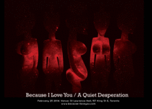 Because I Love You/A Quiet Desperation explores the African mother's experience with the 'other' through the theme of foreign adoption and through the style of myth, magic and ritual; utilizing a unique blend of text, sound, movement and visual imagery.