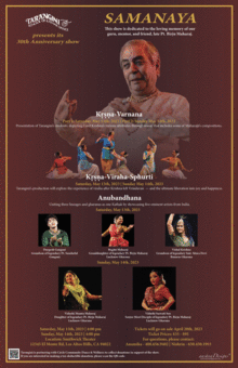 Tarangini School of Kathak Dance is marking its 30th-anniversary milestone with a two-day show titled Samanaya-Coming Together. Samanaya is dedicated to the memory of the Kathak legend, the late Padmavibhushan Pt. Birju Maharaj. In addition to showcasing 200+ Tarangini students, the anniversary production will feature five eminent Kathak dancers from India: Ragini Maharaj, Durgesh Gangani, Vishal Krishna, and Mamta Maharaj, led by Vidushi Saswati Sen.