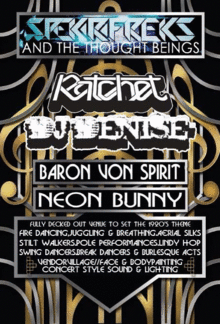 The Spekrfreks and the Thought Beings are teaming up with sexy international female vocalist Michelle Ericsson and bringing out a full band to perform a live Jazzy Glitch Hop set that will include a drummer, guitarist, keyboardists, singer and MC along with Cirquedelic doing what they do all at the same time!!