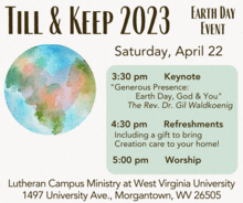 Celebrate Earth Day and God's gift of Creation with the Lutheran Campus Ministry at WVU!