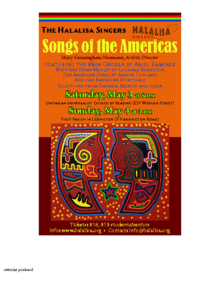 Boston's renowned international choral ensemble, The Halalisa Singers, presents: "Songs of the Americas" featuring the Misa Criolla by Ariel Ramirez. Mary Neumann, Artistic Director, is now in her 10th year in leading the ensemble. A diverse group of thirty men and women, The Halalisa Singers are inspired by the belief that music is a universal language with the power to uplift and unite us all. The concert will also feature accompanists Trevor Berens piano, Robert Ward, guitar and Bertram Lehmann, percussion.