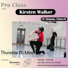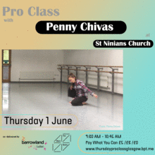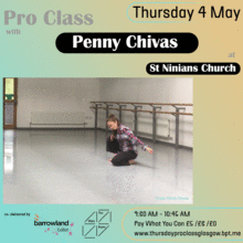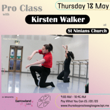 Professional Contemporary Class by Barrowland Ballet and The Work Room SUMMER 2023 BLOCK 2: 4 May - 2 June THURSDAY PRO CLASS Led by Guest Artists at St Ninians Church