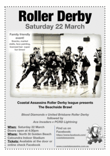 The A grade bout features: The Coastal Assassin's "Blood Diamonds" vs "United Brisbane Roller Derby"