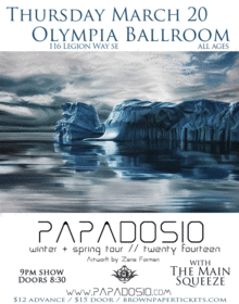 The Olympia Ballroom is proud to welcome back the ever-burgeoning experience that is a Papadosio show. There will be exquisite music, lights, and projection, from this group which hosts the Rootwire festival in southeast Ohio.