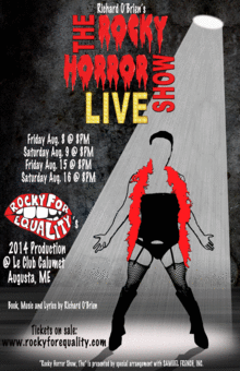 Rocky for Equality is a small theater company from Augusta, Maine who hopes to bring an annual production of THE ROCKY HORROR SHOW LIVE to our state capital! Join us for our 2014 production at Le Club Calumet!!!!