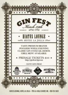 Taste premium brands like Nolet's Aviation, Citadel and more while watching classic gin cocktail demos poolside. Grill menu with rotisserie chicken available.