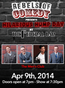 Rebels of Comedy presents Hilarious Hump Days at the Federal Bar in North Hollywood. Come out and see a night of live comedy, featuring an awesome lineup of professional features and headliner comedians.