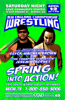 New England Championship Wrestling returns to Beverly with SPRING INTO ACTION, taking place on Saturday night, April 12th at the Cove Community Center, 19 East Corning Street in Beverly with a 7 PM bell time.