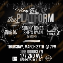 Kenny Fort & 22 Fleet Presents The Platform Showcase At SRB Brooklyn with She's Ryan and Sunny Jones plus Claymore, Tru Born, J Bizzle, K Raww, Stacks, FlyCon, Quez, Self Made Rockky, Stash Lomain, Miss Undastood, & Seth Narley. Doors Open At 7PM, Performances Start At 8PM. 21 & Over.