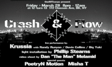 LIVE SET by Krussia, accompanied by Randy Runyon (guitar), Devin Collins (drums), & Big Yuki (keyboard) LIGHTING INSTALLATION by Phillip Stearns LIVE PAINTING by Misha T STREET DANCE by PoetryN Motion VIDEO DIRECTION by Dan "The Man" Melamid PRESENTED by theARTcorps