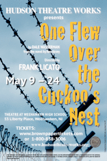 Hudson Theatre Works, New Jersey's newest Equity theatre company will follow up last season's successful production of Of Mice and Men and begin its second season with Dale Wasserman's adaptation of Ken Kesey's classic tale of freedom and compassion, One Flew Over the Cuckoo's Nest. One Flew Over the Cuckoo's Nest is based on the popular 1960s novel by author Ken Kesey. First produced on Broadway, it was later made into an Academy-award-winning movie starring Jack Nicholson.