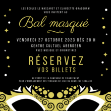 Comme vous le savez surement, le nouveau complexe scolaire qui comprend l'École Claudette Bradshaw et l'École Le Mascaret a ouvert ses portes cette année nest pas encore équipé dun air de jeux. Les enfants doivent donc passer lheure du dîner et les récréations à jouer sur le pavé dans le rond-point des autobus. Nous avons déjà amassé plus de 70 % de notre objectif de 500 000 $ et cette activité nous amènera encore plus près de notre objectif.