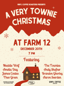 Vinyl Coffee Roasters presents A Very Townie Christmas Show featuring The Townies with special guest vocalists Brandon Ghorley, Amelia Day, James Coates, Andy Shofner, Maddie Wolf, Aaron Seerden & Theo Green to perform your favorite Christmas classics!