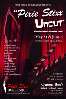 Lights, Camera, Action! Pixie Stixx Burlesque is proud to announce our next big production, Pixie Stixx Uncut. We'll be celebrating our favorite moments in film with brand new acts that are sure to entertain! This show will feature a full cast of professional dancers, aerialists, and singers. As with any Pixie Stixx production, this will be an interactive experience, with the dancers getting up close and personal with our audience members!