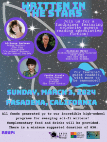 More About the Omega Sci-Fi Project: The Omega Sci-Fi Project is produced by Light Bringer Project, a nonprofit arts and education organization serving Pasadena and Los Angeles. The Project seeks to empower emerging young writers from Los Angeles County high schools to contribute their unique voices and diverse perspectives to the art of science fiction story writing while tapping into the power of science fiction to examine the greatest challenges and moral dilemmas humanity faces. The heart of this program is a season of free classroom creative Sci-Fi writing workshops culminating in a spring reading featuring our top story submissions!