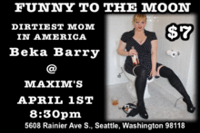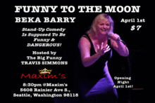 | EventFunny to the Moon Tuesdays at Maxim's Presents BEKA BARRY! Opening Night! Live Comedy has arrived in the Hillman City area of Seattle, have you said hello?  On April 1st, Maxim's is bringing Seattle comedy favorite, Beka Barry, to the neighborhood with her honest and hilarious observations about life, single motherhood and really, whatever she thinks of to tell you in the moment. Her raw energy seldom disappoints.