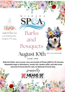 Adoptable dogs in attendance, vendor fair, basket raffle,bake sale, kids spin wheel, and take home family personal Smores kits for sale, its National S'mores Day.. First 30 children receive a FREE personal s'mores kit. Visit with onsite miniature ponies,Sunrise and Sunset. Just recently added Uncle G's Ice Cream Truck onsite 12-2. Serving ice cream for your pup. 50% of pup cup sales back to the Niagara SPCA