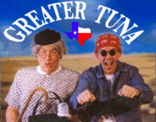 Two performers who are part actor and part quick-change artist dominate the hilarious and often strange activity that comprises a typical day in Tuna, Texas, the Lone Star States third-smallest city. In fact, it takes a team of lightning-fast dressers backstage to help create the twenty-odd oddballs who represent the population of the entire Greater Tuna Area men, women, children, animals and space aliens. Some quick-changes occur in fewer than four seconds. Greater Tuna opens with the morning news report from the low-power radio station (275 watts) hosted by two slow-talking broadcast celebrities Thurston Wheelis and Arles Struvie who keep the town up-to-date on Tunas late-breaking news. The play then quick-changes to all the various news scenes and crime scenes around town. Ed Howard, who directed Greater Tuna on Broadway and is one of the three writers of the comedy, directs this touring production. Jaston Williams, Joe Sears and Ed Howard wrote Greater Tuna in Austin in 1981 where it became a cult favorite before moving to the Alley Theatre in Houston then to the Kennedy Center and finally an extended run at Circle In The Square in New York. The show also ran on Broadway, won a Tony Award and was produced on HBO. Since then, the trio has written popular sequels: A Tuna Christmas and Red, White and Tuna. and Tuna Does Vegas.