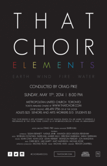 That Choir invites you to our final concert in our 2014/2015 Season when we present an evening of choral music inspired by the 4 elements: Earth, Wind, Fire and Water.