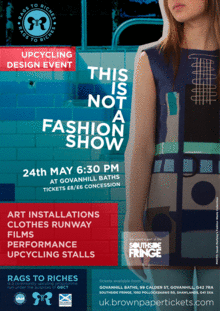 'This Is Not A Fashion Show' will include a catwalk of intriguing and beguiling upcycled creations set in the historic Govanhill baths main pool. With a bespoke stage created by our in-house theatre group, a number of models from all walks of life will adorn a range of upcycled garments from a range of designers such as 'Beautiful Brastards' witty upcycled bras, Glasgow Fleamark's zingy clothing ,fresh graduate talent 'Sarah Morbey' with her Fashioning Waste's collection and Bedlam Boudoir upcyled festival fancies amongst others. This unique fashion show will also bring together an eclectic mix of organisations including 'Glasgow Clyde College' fashion students showcasing works created for one their upcycling project, Urban Roots' Interactive Garden dresses and '85A Collective' ultimately energetic range of performance costumes. The Rags to Riches team will create of collection of boldly upcycled garments bringing tutors, volunteers and participants to further explore the wonders of creative re-use. 'Louna Productions' will also bring a hint of storytelling following environmental themes and 'Altronica' will again create one of his spectacular art installations.