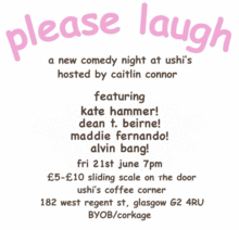 Please Laugh is a new comedy night for Glasgow queerdos ~ come inside, maybe you'll see