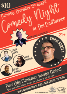 Come join us for a night full of laughter and fun at The Confluence! Our Comedy Night event will feature hilarious stand-up acts from talented comedians. Get ready to have your funny bone tickled and enjoy a great time with friends and family. Don't miss out on this evening of entertainment and good vibes!