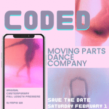 Moving Parts Dance Company presents our debut work, CODED. CODED ponders the relevence of connection and embodiment as technology progresses 'away from the body'. An abstract story of codependence in the digital era.