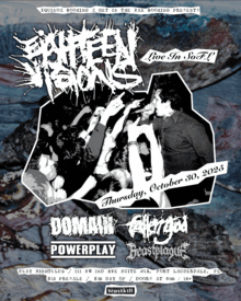 Eighteen Visions is back in South Florida right before they leave on their cruise with Lamb of God. With SFLHC bands Domain, Fallen God, Beastplague, and Powerplay.