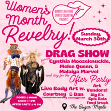 Cynthia Mooseknuckle & Company are set to perform at The Sugar Maple for the first time ever! Tickets are for this exclusive 3 hour Drag Show. $5 of every ticket sold will go to the Forward Please Project.