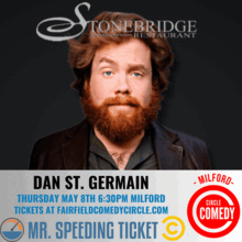 Join us for a great night of food and comedy at the StoneBridge in Milford with Dan St. Germain headlining! Doors and buffet dinner open at 6:30PM, Show begins at 7:30PM.
