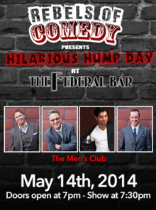 Rebels of Comedy presents Hilarious Hump Days at the Federal Bar in North Hollywood. Come out and see a night of live comedy, featuring an awesome lineup of professional features and headliner comedians.
