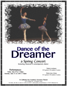 A Spring Dance Concert featuring Ballet & Modern Dance. Students of all ages will perform, with choreography by Carla Lippert, Margaret Hord, & others. Directed by Julie Ann Keller.