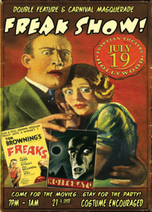 Tremble at the terrors of Nosferatu! Marvel at the human oddities of Freaks! If you find yourself overcome, just keep telling yourself it's only a movie! Afterwards, for your pleasure and amusement, a carnival awaits in the courtyard. See fantastical feats of daring and skill! Dance, drink and mingle amidst spectacular sirens, mysterious magicians and more! Come in your craziest costume, your carnival couture or just what you have in the closet. The Freak Show welcomes all who want to be amazed and astonished!