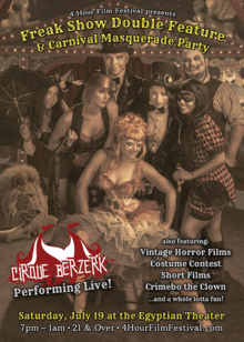 Come one, come all, step right up and take your chances! You there! Yes, you, the handsome fellow. And you, the lovely lady! You'll be shocked and amazed by what you see! Saturday night, July 19, the doors of the Egyptian Theater open for one night only on a spectacle never before seen in the City of Angels: A double feature film fantasia and carnival masquerade.