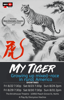 Nominated for "Best Dramatic Theatre" at the Hollywood Fringe Festival 2025 (June), MY TIGER returns with fresh new scenes to Write Act Repertory at the Brickhouse Theatre in North Hollywood for a special extended run. Written and directed by Dionysius Vlachos, the show opens August 22 and runs Fridays and Saturdays at 7:30pm and Sundays at 2pm through August 31.