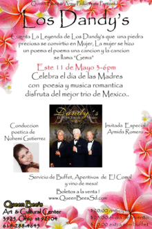 Queen Bee's is the perfect place to Celebrate Mother's Day! Performing Live - Los Dandy's - Legends in Romantic Ballads! This Trio has a magical melody that will be the perfect way to enjoy Mother's Day with loved ones. Nohemi Gutierrez will be Performing a truly inspirational Poetic Recital. Special Guest Armida Romero will be performing as well.
