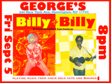 This week! This Friday! This planet! Not One, but Two Billys! at Not One, but Two spots! Billy & Billy at Ninnet & George's! Friday LIVE at George's with a live feed at Ninnet's! (for the agrophobic population). $20 online presale. $25 and your first born at the door.