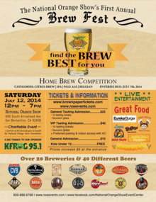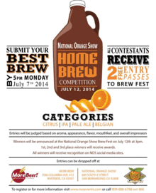 We will announce the winners of the Home Brew Competition during the Brew Fest. All contestants will receive 2 free passes to the brew fest! For more information on how to enter, go to www.nosevents.com, look us up on Facebook "NOS BREW FEST", visit More Beer! in Riverside or email: gcovey@nosevents.com.